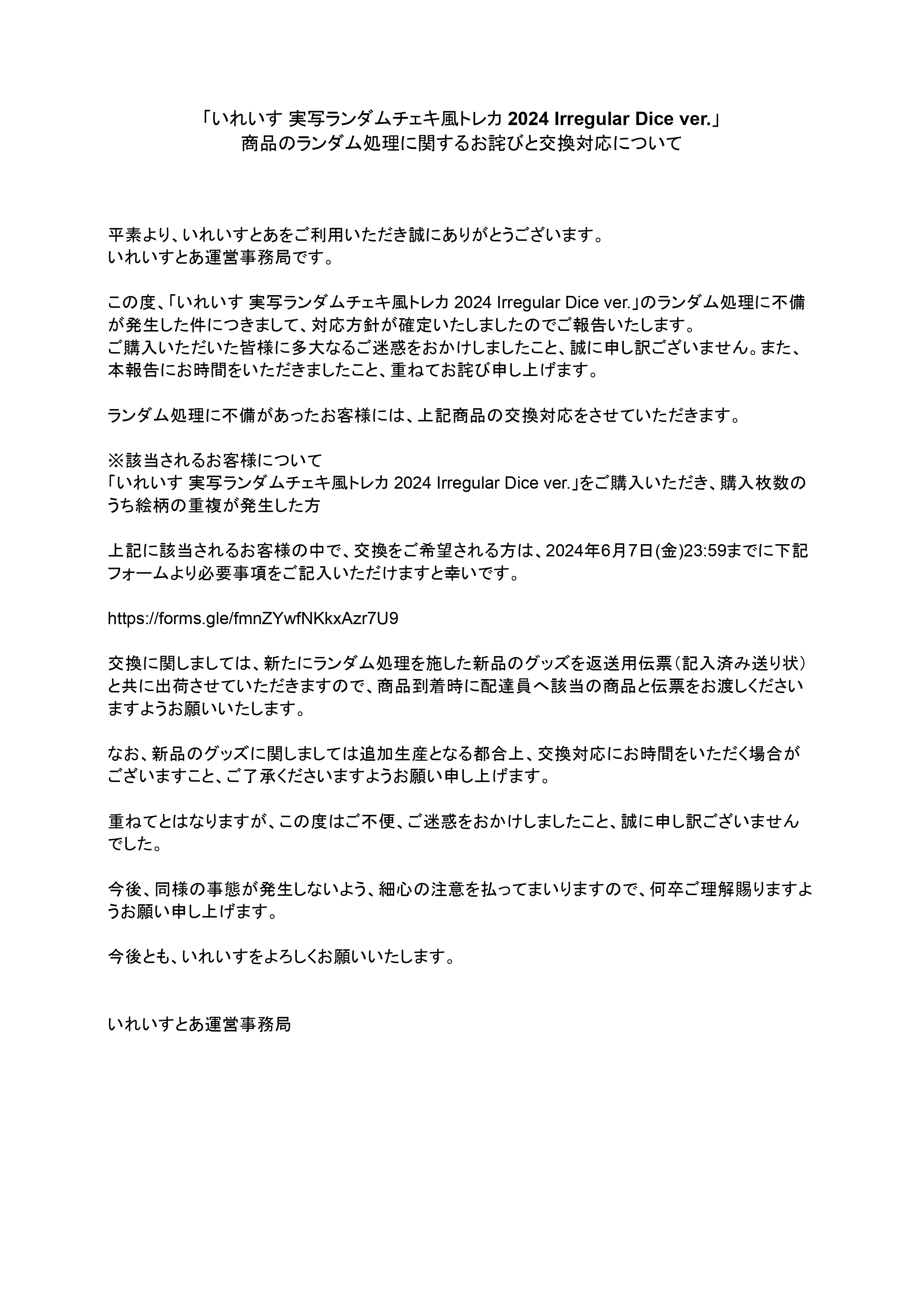 この度、「いれいす 実写ランダムチェキ風トレカ 2024 Irregular Dice ver.」のランダム処理に