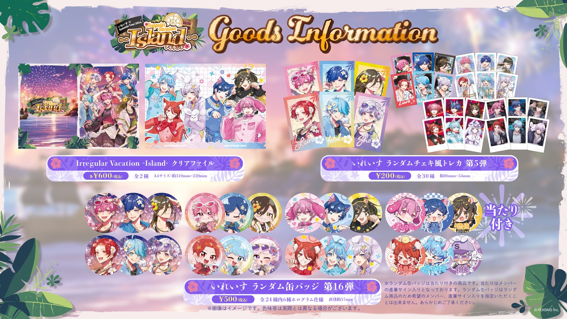 🎲いれいす Summer Tour 2024 Irregular Vacation -Island- グッズ発売決定!🎲 2024.06.23 グッズ 6/29日(土)18:00よりライブグッズの発売が決定✨ メンバーカラーのサコッシュや耳型ヘアピンなど豪華ラインナップを大公開🎉 詳細は画像をチェックしてください! BACK TO LIST