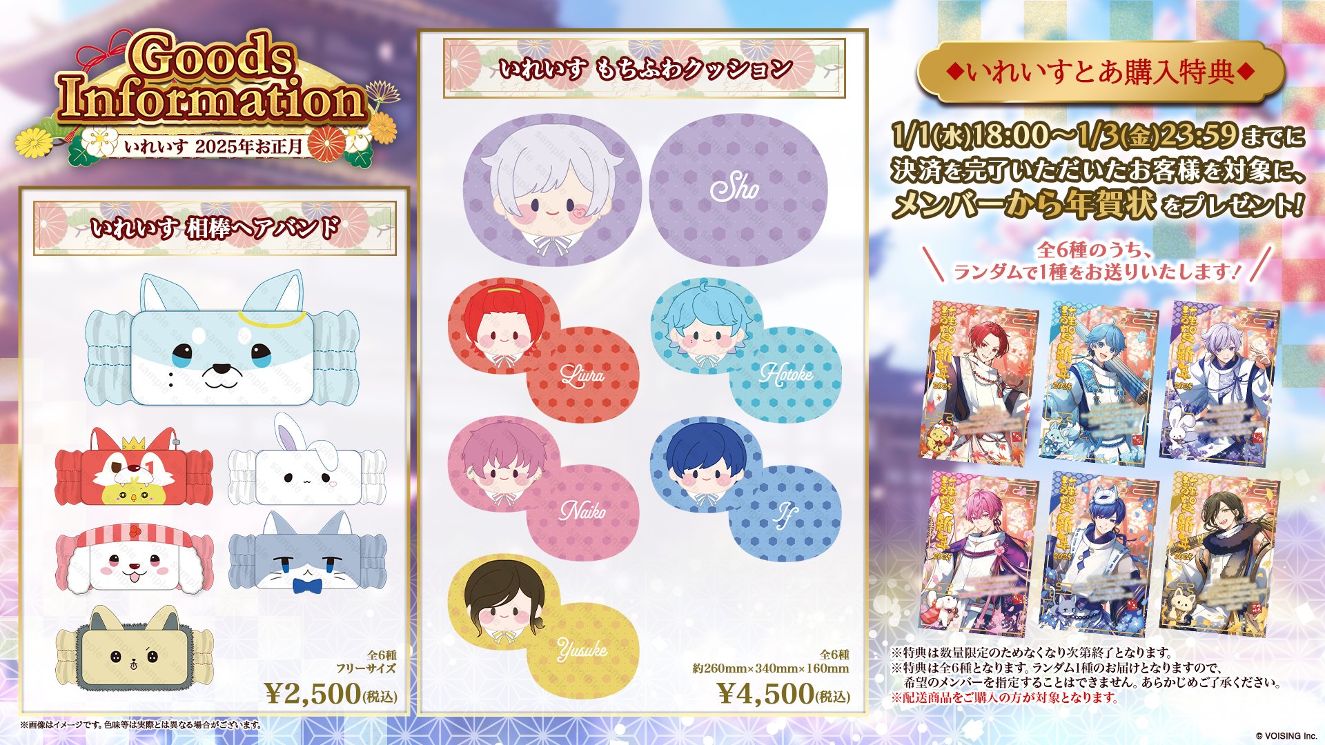 🎲いれいすお正月グッズのお知らせ🎲 2025.01.01 グッズ いれいす2025年お正月グッズが販売開始✨🎲販売開始1月1日(水)18:00〜🎲いれいすとあはこちら!詳細は画像をチェック! BACK TO LIST